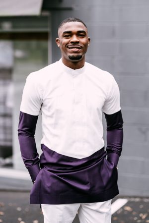 Gold dispersed metallic jackard peak velvet lapel tuxedo, gold metallic trouser, black or white shirt and black handmade bow tie